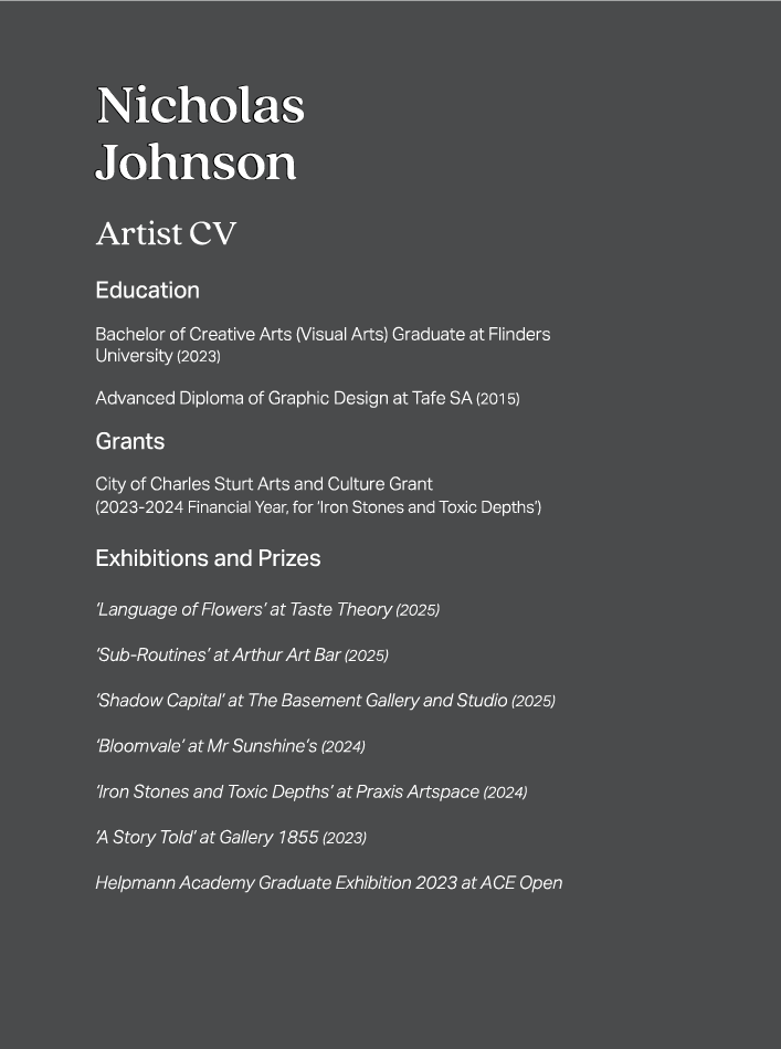 Nicholas Johnson’s practice involves ideas around materials, consumerism and other systems within